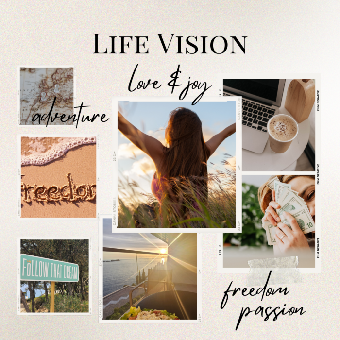 Ein kreativer und motivierender Workshop, der dir erlaubt deine Träume und Ziele bildlich festzuhalten und dich dabei unterstützt deine Vision zu finden.